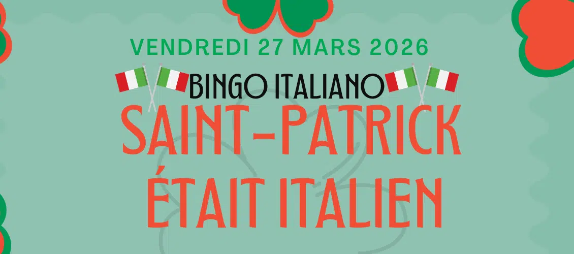 This Friday, March 27, 2026, join us for the St. Patrick’s Day-themed bingo at La Maisonnette des parents, in collaboration with Pizzeria Napoletana, Miss Napoletana, Elio Pizzeria Ristorante, and the SDC de la Petite Italie.