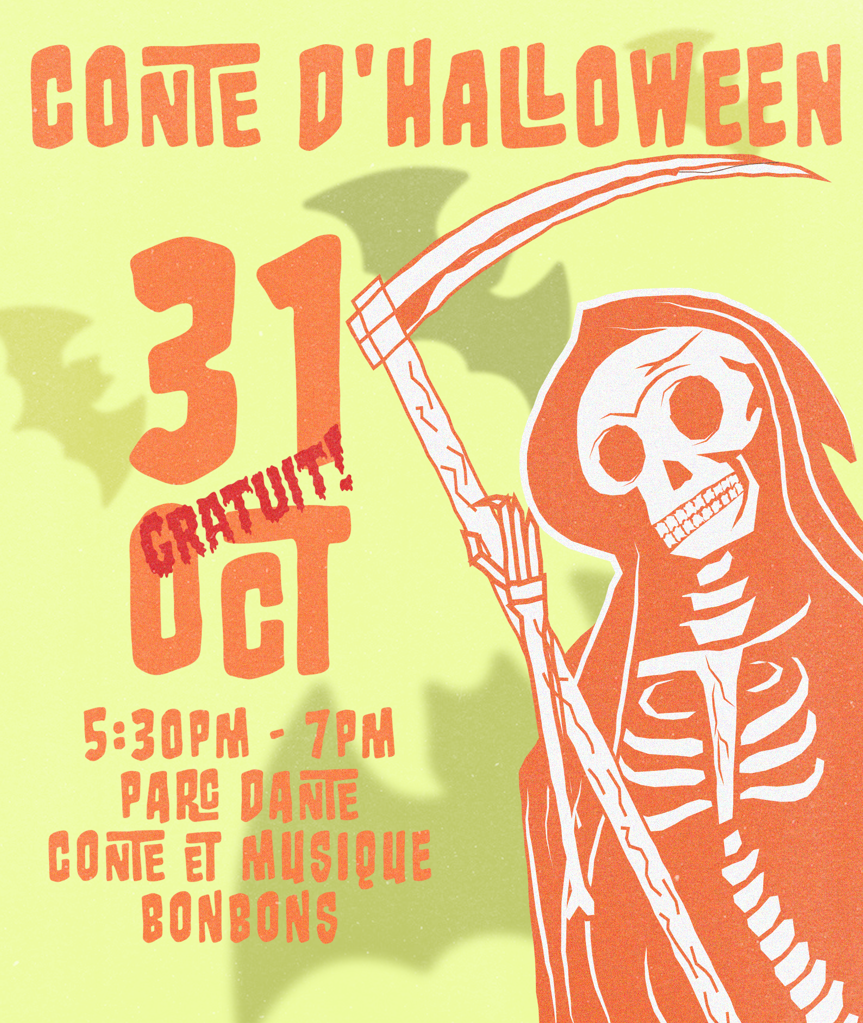 Le soir du 31 octobre, clôturez votre collecte de bonbons en passant par le parc Dante pour les contes d’Halloween de Saulo et Geremias. De 18h à 19h, les deux acolytes raconteront à vos petits vampires deux récits où la Mort joue les premiers rôles et un conte collecté par Italo Calvino.